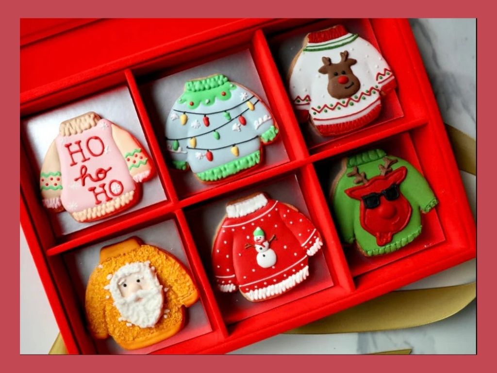 Christmas sweaters that look good enough to eat. Deck the halls with some hilarious holiday cheer. Baking Maniac’s Ugly Christmas Jumper Cookie Collection is a fantastic twist on classic festive treats – a beautifully presented box holding six unique, hand-piped sugar cookies, each meticulously decorated with vibrant royal icing to look like the ugliest (and best!) holiday sweaters. Perfect for holiday party favours, a memorable hostess gift, or the grand prize at your next Ugly Jumper contest.