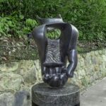 Also located near the Chantal Miller Gallery is the 2008 sculpture The Wealth Vase, a work representing “wealth, prosperity, and a life of abundance and peace”. Its form is that of a downward curled hand, with a hole and slivered shapes cut into its palm, creating a silhouette of a bottle. Through its curved lines and thick structure, the piece oozes calm and safety, as traditional sculptural methods demonstrate playfulness.