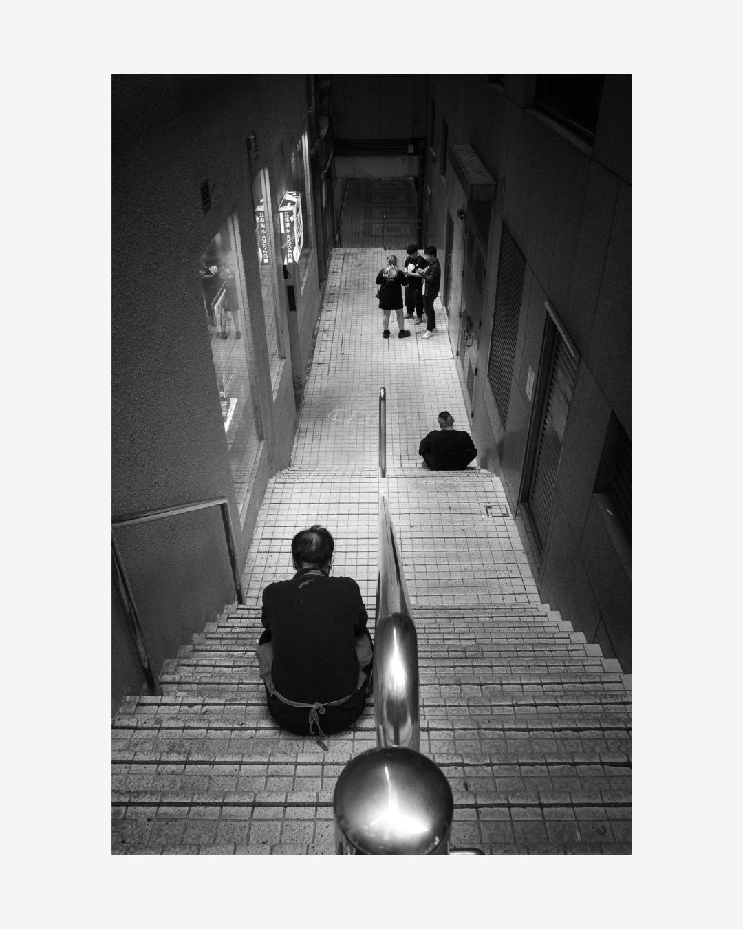“I love Hong Kong alleyways: they’re small hidden spaces which people use to smoke or take a break from the hustle and noise of the city. When out with my camera, I’m always looking for natural compositions and suggestions of stories. I loved how the two figures sitting, lead naturally to the group at the bottom of the stairway.”