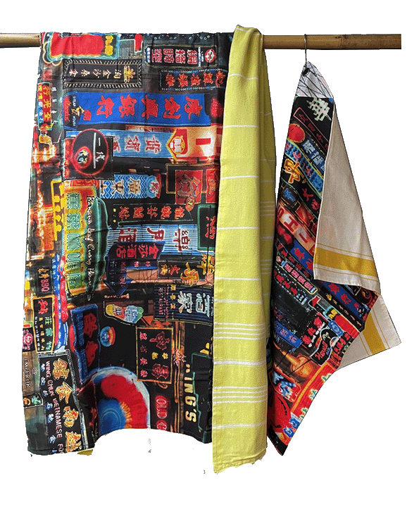 These days, as a peruse through the La My Dragonfly website attests, the product range has extended and now includes: kimonos, towels, tea towels and the Keith McGregor Collection of towels and tea towels backed by Hong Kong photographs provided by McGregor and printed on cotton. Some of her products are packaged in bags made from the old sails of yachts and hand-cut by Schiavon, who learned to sew when young, “like all Italian girls of my generation”, she says.
