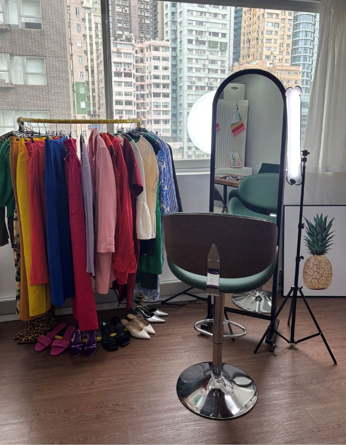 In Hong Kong, Kwan observes a fascinating mix in styles and palettes. Some people embrace bold colours and unique combinations that reflect their personalities and creativity, while others lean towards more conservative attire and ‘safe’ colours. “Many clients want to break free from their safe choices, but aren’t sure how to achieve that, come to me for support in realigning their personal style with who they want to become,” she shares (Kwan plans to launch a subscription service for personalized styling advice and explore the connection between style and wellness).