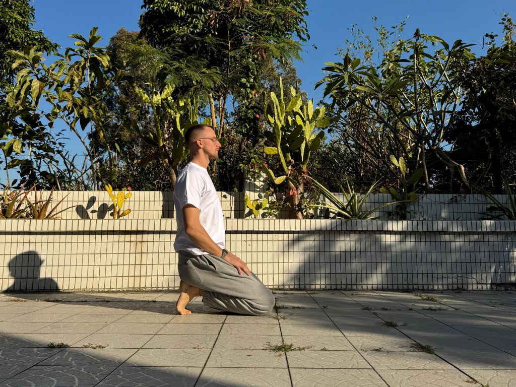 To exit, gently lift your hips off your heels and return to a kneeling position or sit cross-legged.